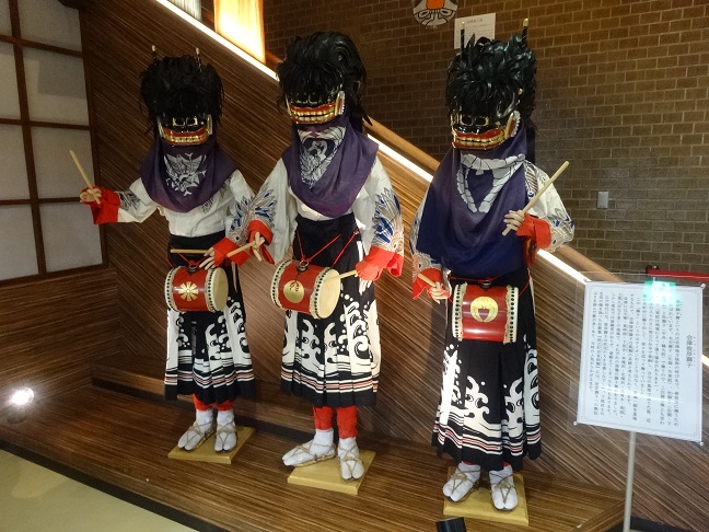 現在、「まなべこ」常設展入口にて会津彼岸獅子三体(太夫獅子・牡獅子・牝獅子)を展示しております。