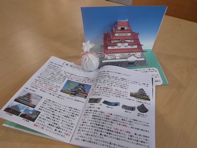 昨年ご好評いただいた鶴ヶ城の飛び出すカードの進化系で、只今開催中の企画展「鶴ヶ城のヒミツ」とコラボして、1冊の飛び出すミニ図鑑を作りました!中は、鶴ヶ城や石垣が飛び出し、鶴ヶ城のヒミツ情報満載の図鑑となっています。これを持って、鶴ヶ城を巡ってみたら、いろんな発見があるかもしれませんね!