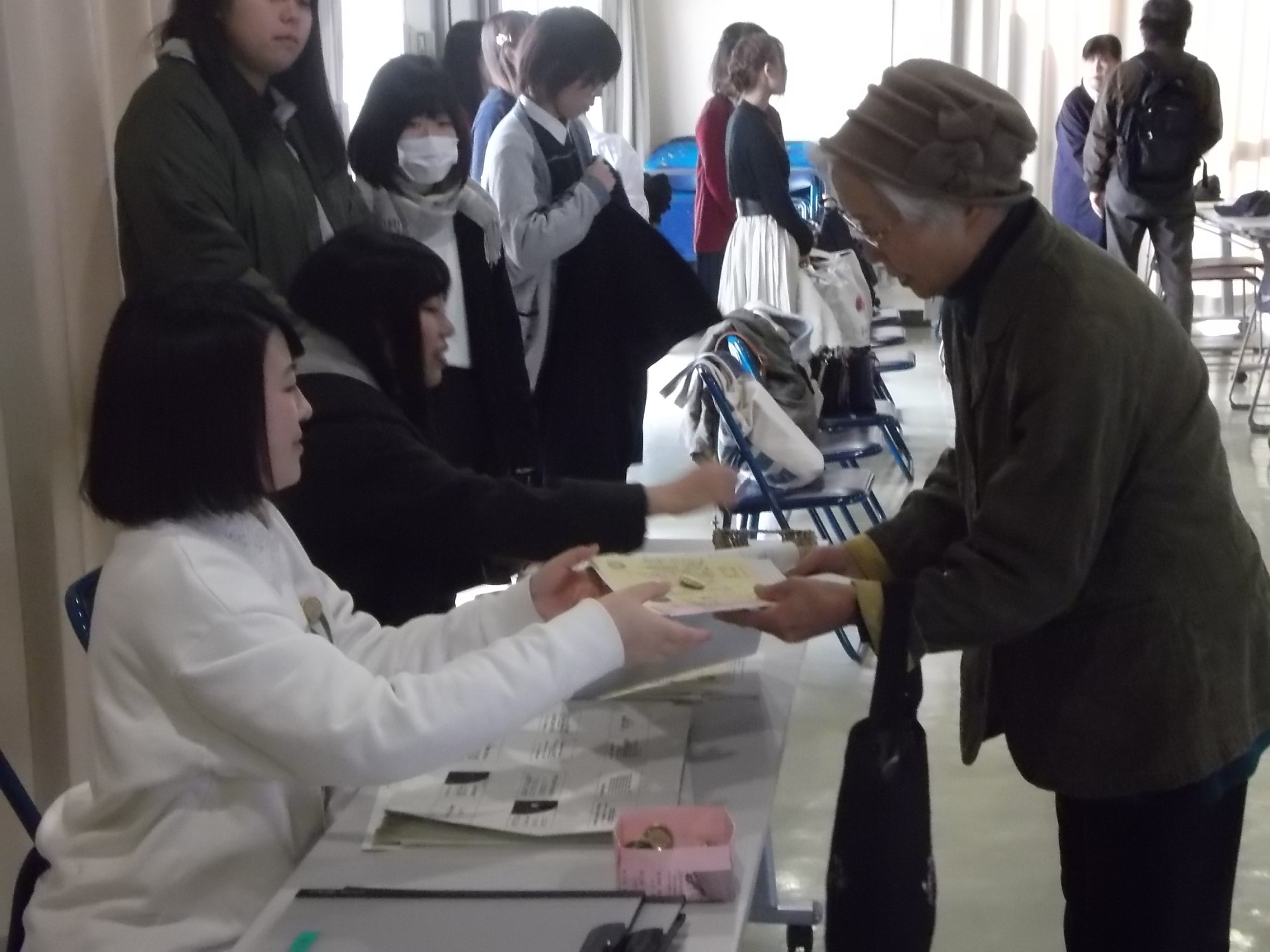 また、郡山女子大学短期大学部文化学科の発掘ガールたちも応援に駆けつけ、受付のお手伝いや講座参加特典のオリジナル缶バッジのデザインなどをしていただきました。