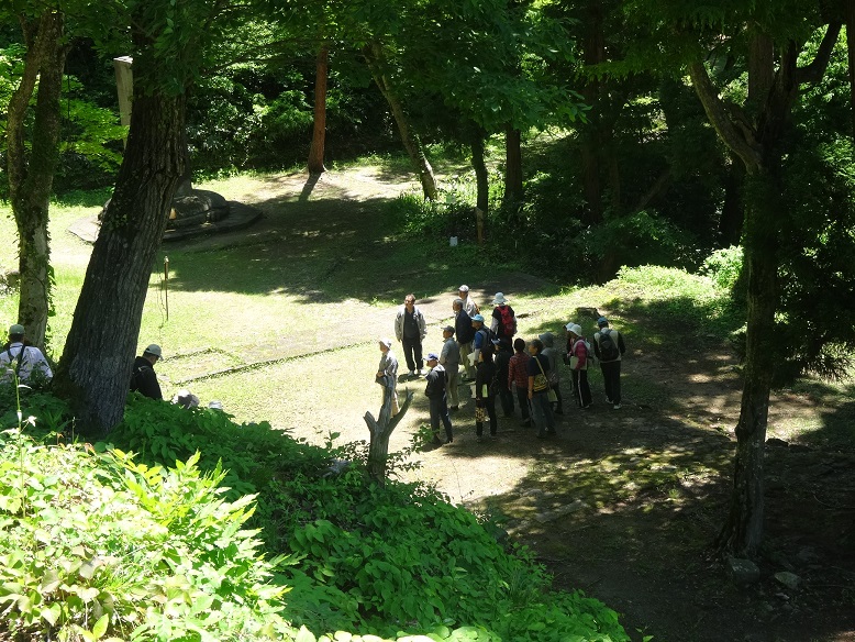 今回は藩主の墓を巡るコースで、足場の悪い中2代藩主保科正経の墓を経て、入之峰、中丸山に入りました。4代藩主松平容貞の碑石に書かれた碑文を例にとり、読み方や内容などの詳しい解説があり、参加の皆さんは興味深げに耳を傾けメモをとっていらっしゃいました。また、各藩主の亀趺の表情や石の手触りの違いなども確認しながら、楽しく散策も進みました。約2時間の講座はあっという間で「見て・聞いて・触って」となかなか充実の文化講座でしたね!(手前味噌でスミマセン(^-^;)