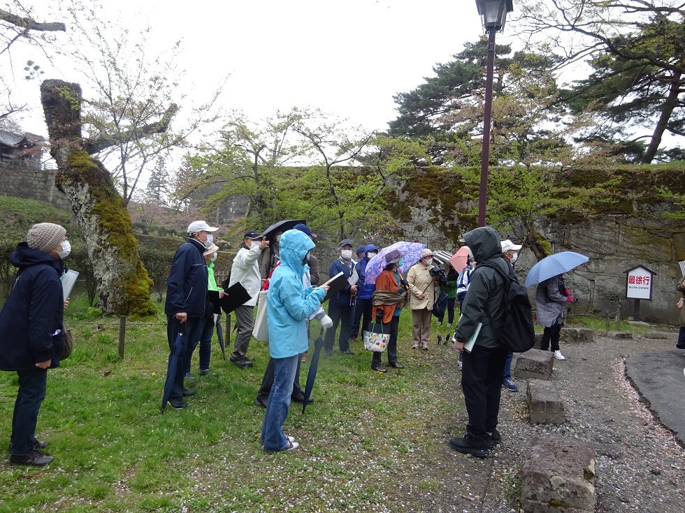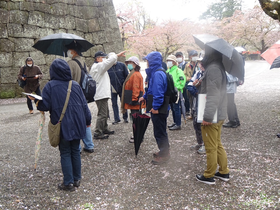 講座では、お城を守る工夫を探るため、「お城に敵を近づけない・お城への侵入を防げ・仕掛け(攻撃)を悟られない」に分けて解説がありました。さらに、参加者のみなさまには実際に石垣や土塁を上り下りしながら、攻撃と防御・味方側と敵側からの視点、戦略的な観点からどのようにお城を築いたのか?等を考えながら散策していただきました。解説を聞き、体感することでお城への理解がより深まったのではないでしょうか。