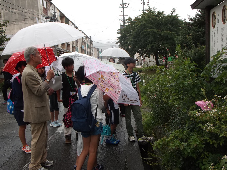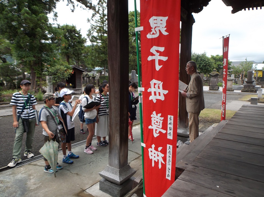 7月3日、第2回目の「まなべこ」応援隊歴史文化講座として、当館「まなべこ」周辺の歴史散策を行いました。今回も市内の小中学校の「まなべこ」応援隊の隊員の皆さんが参加してくださいました。