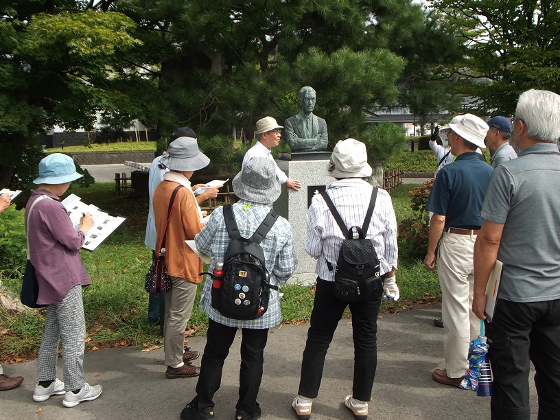 9月11日、第15回「まなべこ」歴史文化講座を開催しました。今回のテーマは、「鶴ヶ城周辺の石碑を巡ろう」でした。