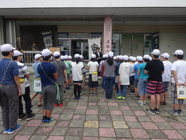 6月6日(水)、まなべこツアー7日目は鶴城小学校45名の皆さんが来てくださいました。鶴ヶ城に一番近い小学校である現在の鶴城小学校の敷地には、江戸時代は武家屋敷が建ち並んでいました。