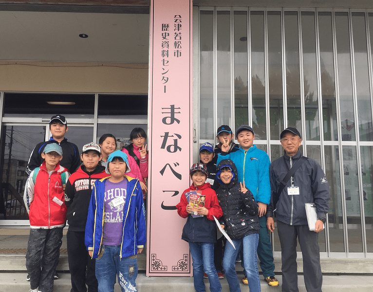 館内に用意されている「会津歴史クイズ」「まなべこクイズ」に熱心に取り組んでいたり、石臼引きを体験したり、土器のコーナーで実際に土器の破片を組み合わせてみたり・・・たくさんの生徒さんが会津の歴史にふれていってくれました。