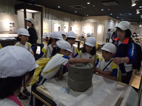 前日のまなべこツアーで、小金井小学校の6年生に続いて、今日は3年生が遠足で「まなべこ」に立ち寄ってくださいました。大砲の展示や石臼体験など、とても熱心に見学し、クイズにも挑戦していただきました。小金井小学校3年生のみなさん、ご来館ありがとうございました。DSCF2535 DSCF2537