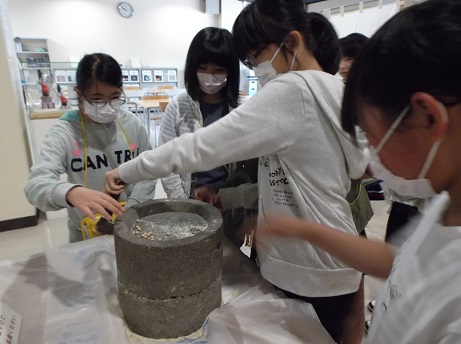 大砲や土器や石臼に直接触れ、体験をすることで、会津の歴史を間近に感じて頂きました。